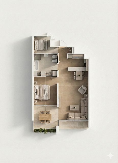 Expansion: The current layout can be reimagined to create a second bedroom, perfect for guests or a home office.